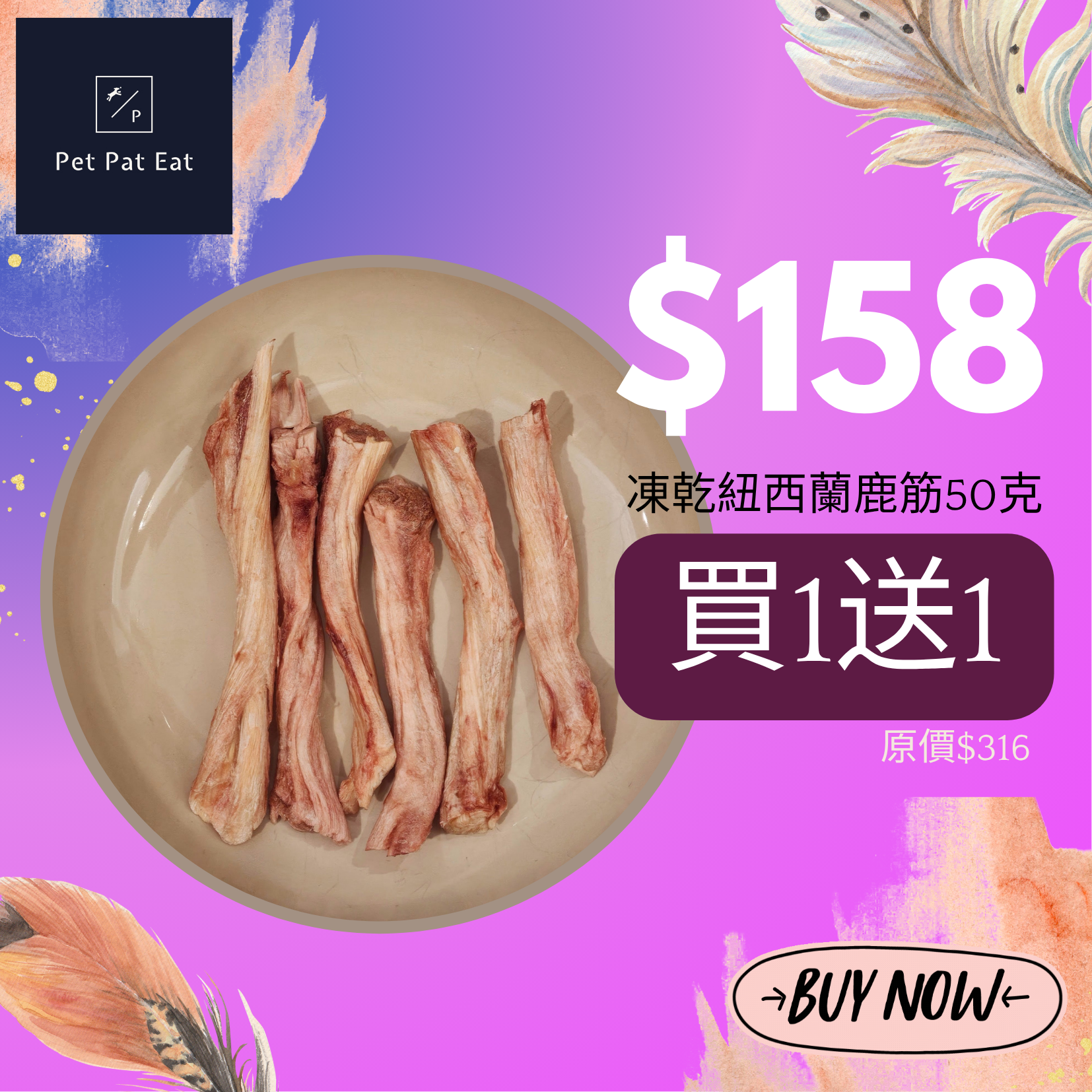 【買一送一】=$158有2包凍乾紐西蘭鹿筋50克呀😍